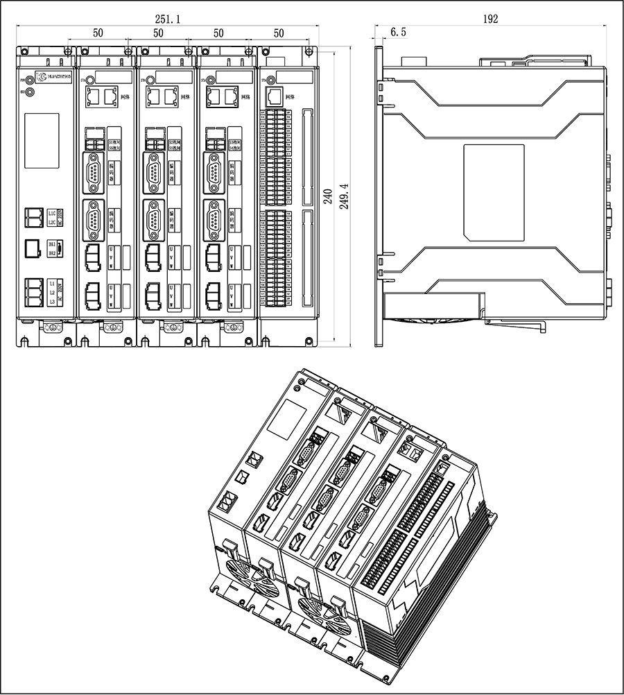 3)省略號處單元模塊相同,系統(tǒng)軸數(shù)可選擇2軸、3軸、4軸、5軸、6軸、7軸、8軸。端口連接方式相同。