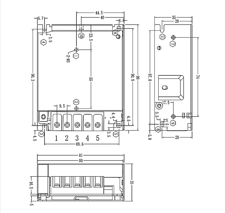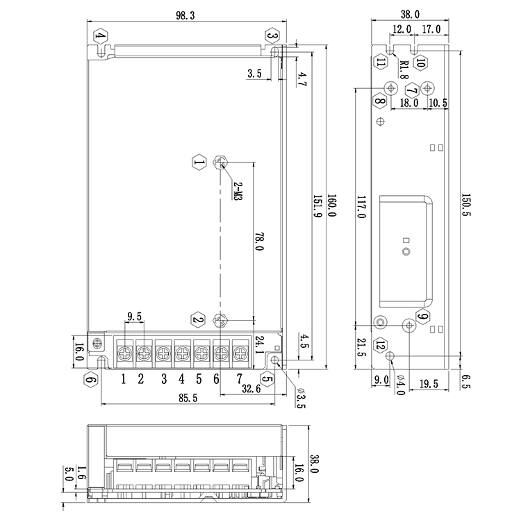 華成系列機械手控制系統開關電源包含單路/雙路,50W/100W兩款開關電源;制動電阻有120W/200W/300W選擇,各功率段產品尺寸及安裝方式如下: