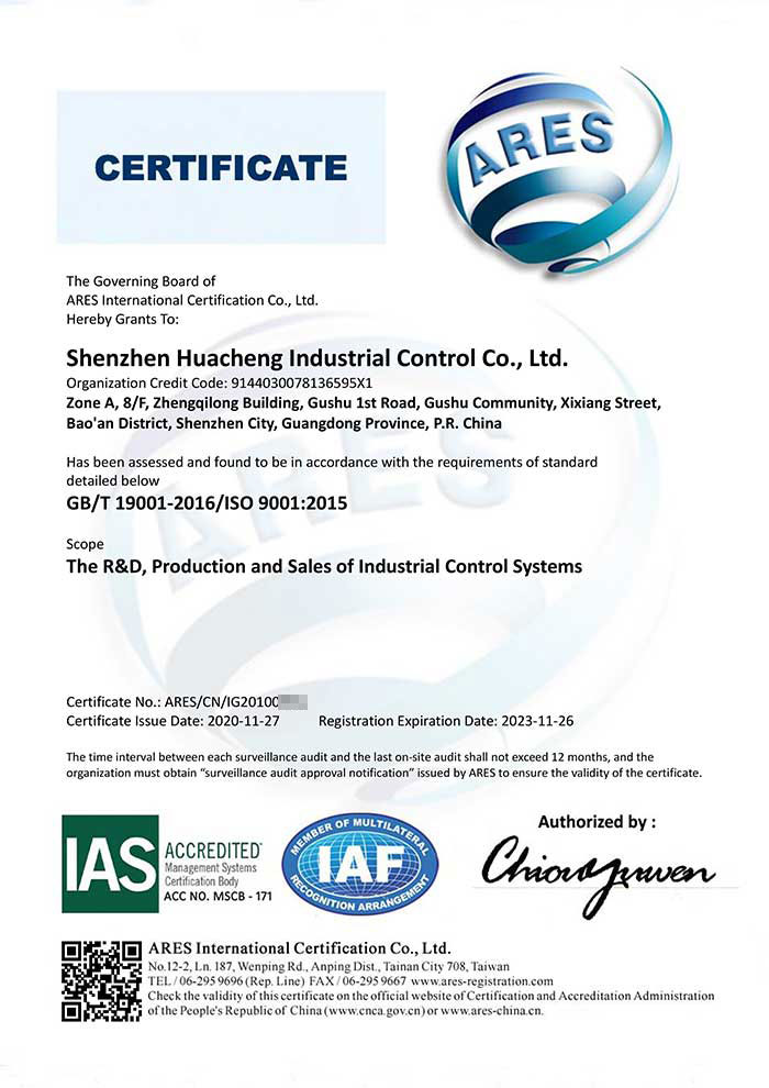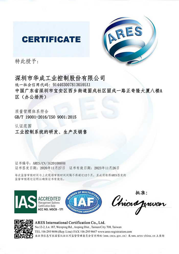 近日,華成工控順利通過ISO9001:2015質量管理體系認證,這標志著華成將步入規范化、標準化、科學化的現代企業管理軌道。