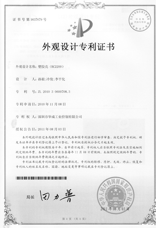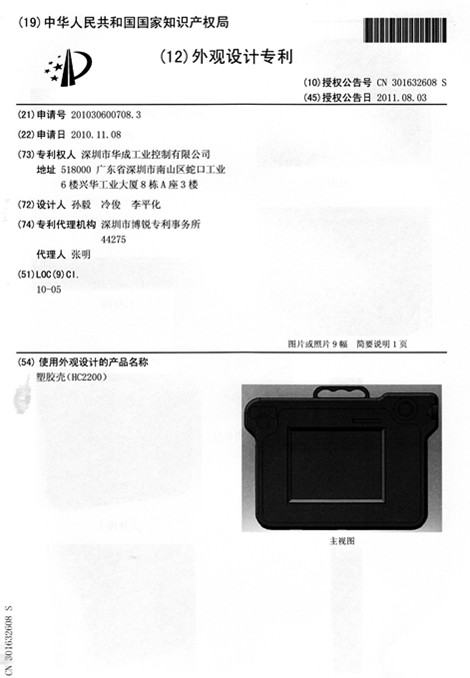 近日收到國家專利局的通知,深圳市華成工業控制有限公司的外觀設計專利“塑膠殼(HC2200)”已獲得授權。這是該公司一貫注重自主創新的結果。